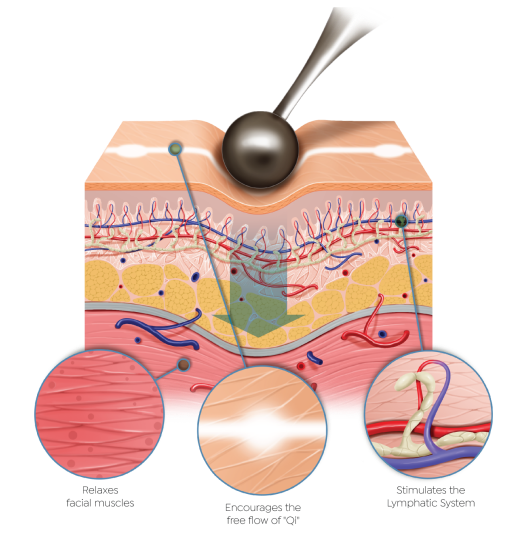 Practising acupressure on the face with my signature acupressure pen relaxes facial muscles, increases blood circulation, and boosts the lymphatic system.