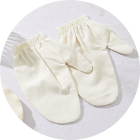 Ideal for sensitive skin due to their gentle and non-abrasive nature. The fine silk fibres provide a mild exfoliating effect, promote blood circulation and lymphatic drainage without irritating the skin.