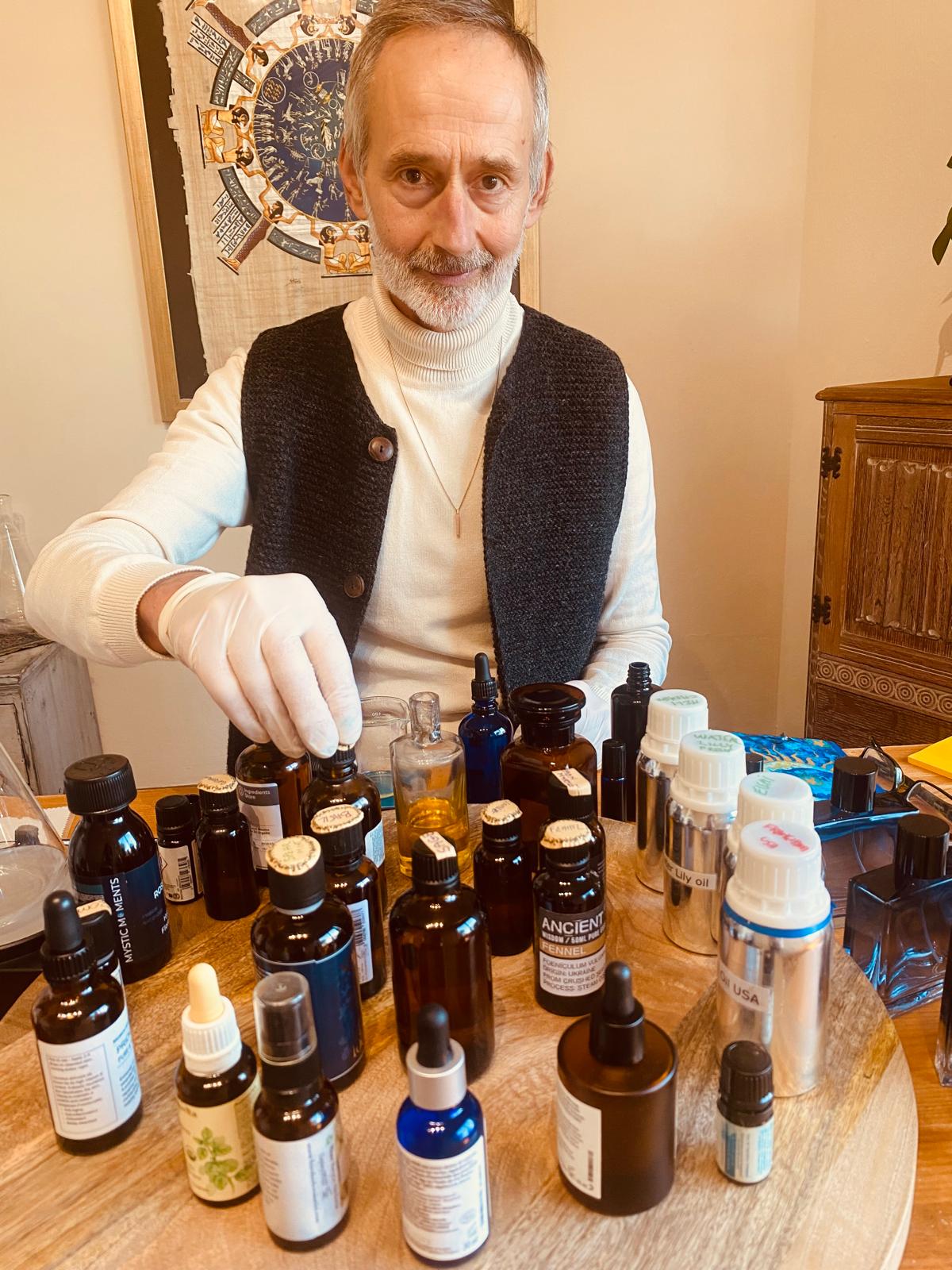 Today, he works selectively, crafting refined blends that honour both the science and the subtlety of scent.