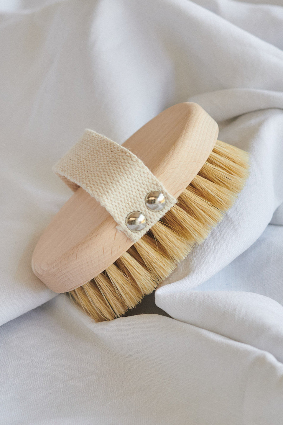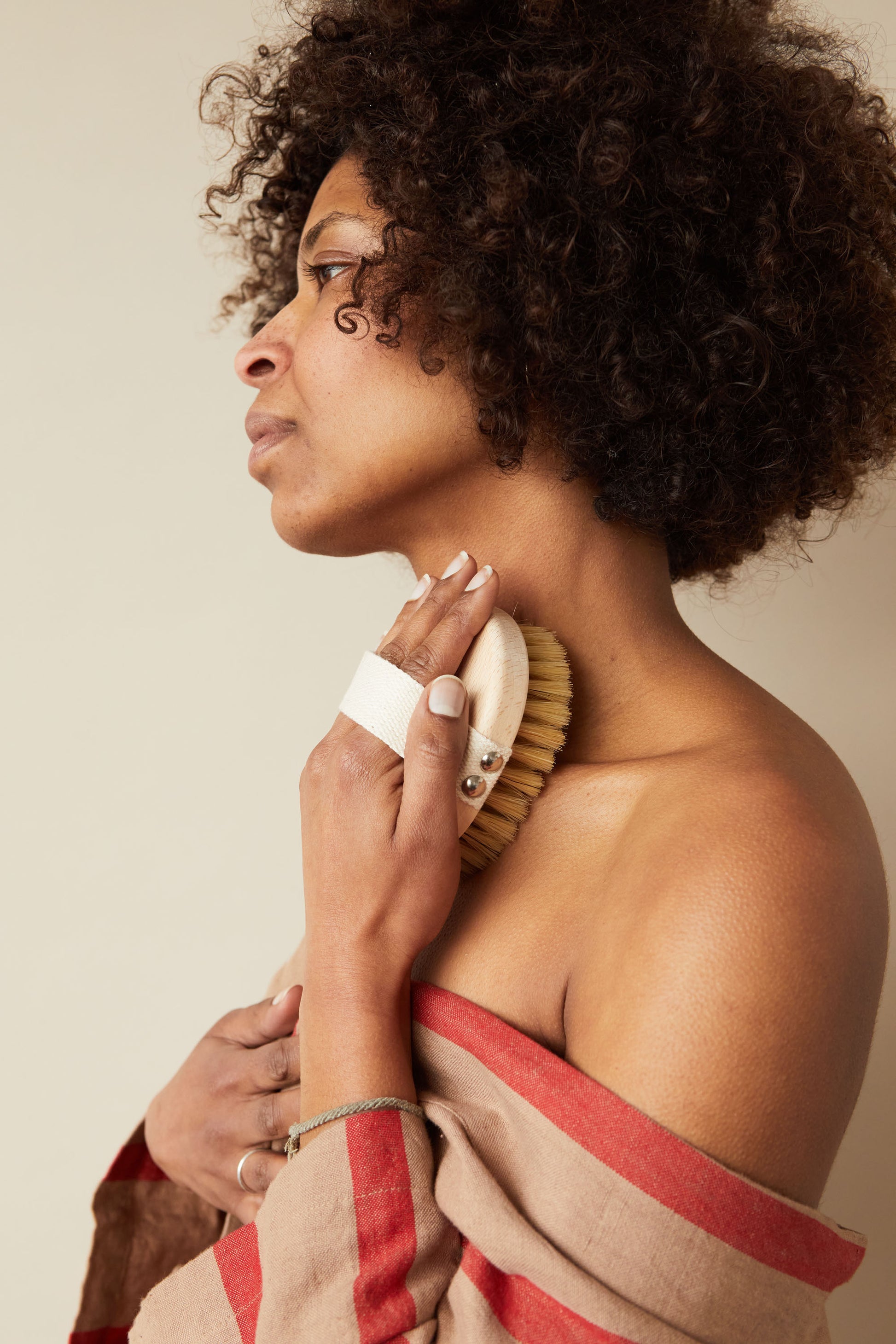 Handmade in Europe, using biodegradable natural bristles, FSC-certified wood, and OEKO-TEX certified cotton, our signature body dry brush has the perfect strength to introduce this new ritual into your skincare routine.