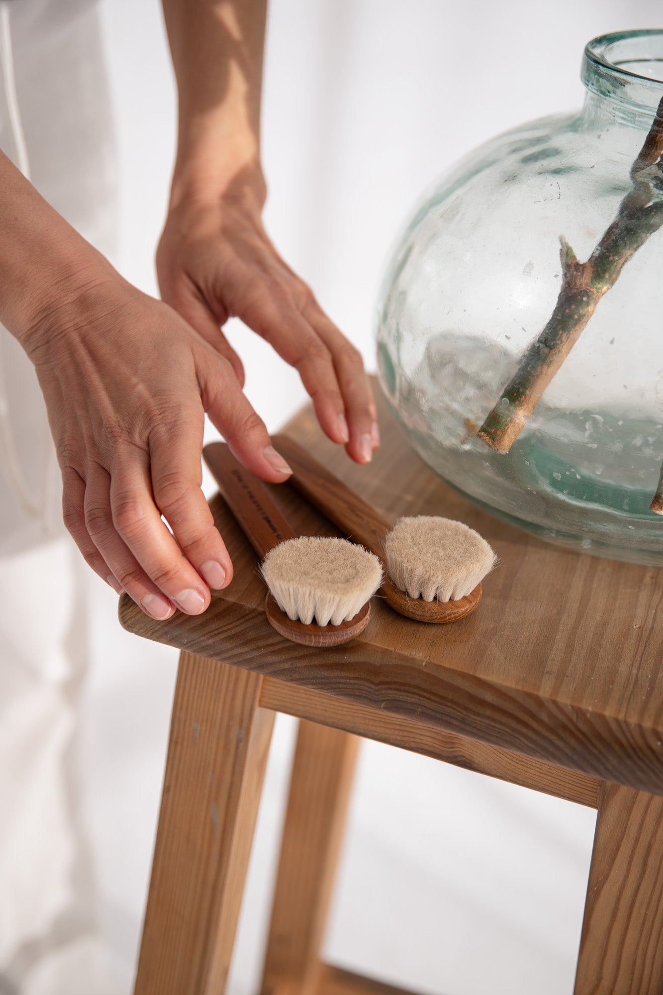 Very soft dry brushes that were made in Sweden and come in a pair to stimulate both sides of the face at the same time. Each brush is made by hand by visually impaired craftsmen.